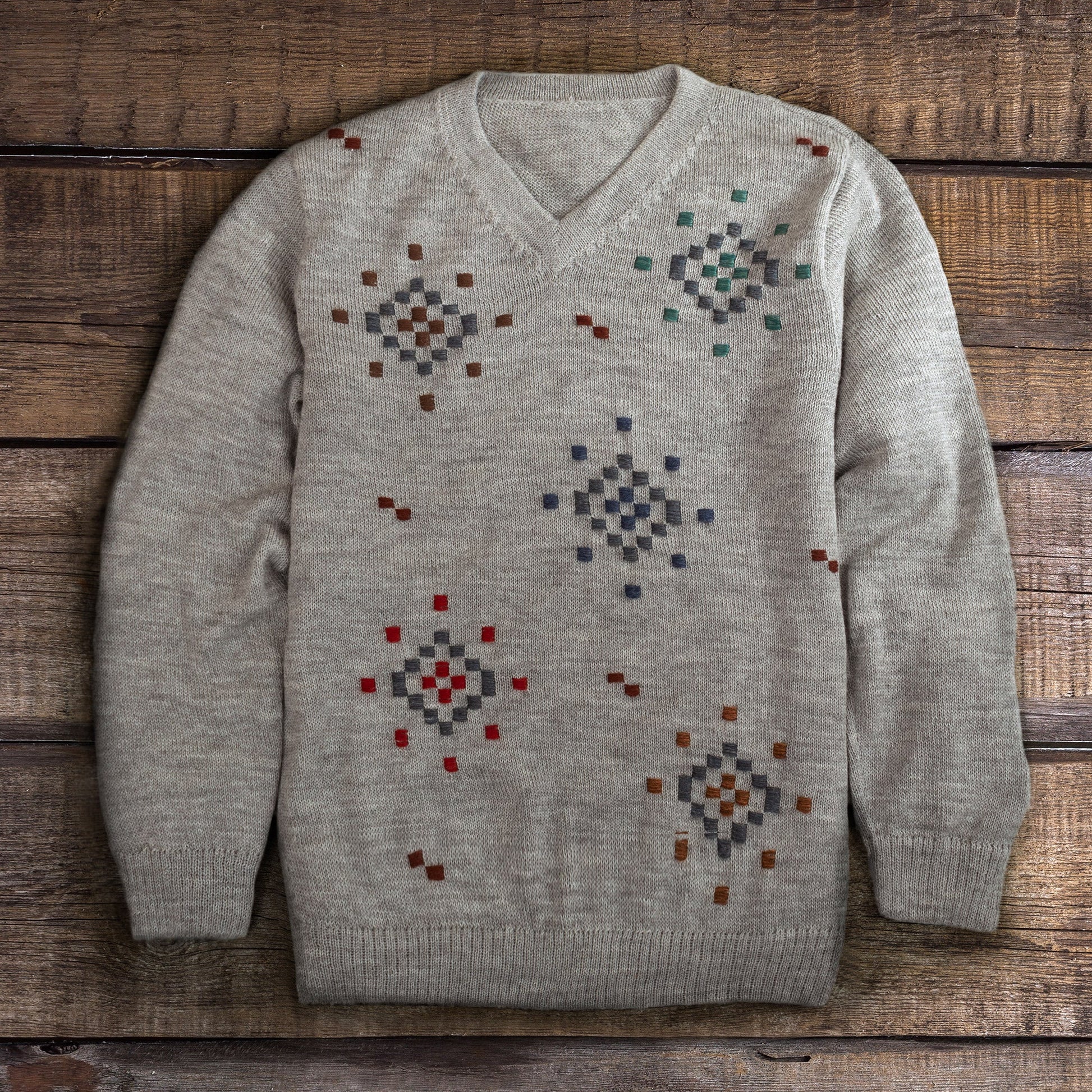 100% Alpaca Hand-Embroidered Men's Pullover Sweater in Grey - Little Stitches in Grey