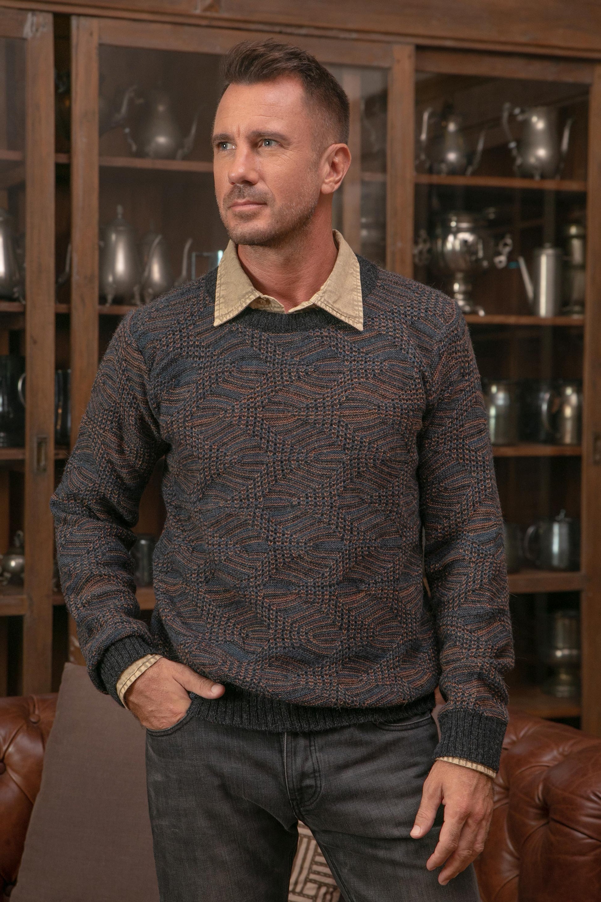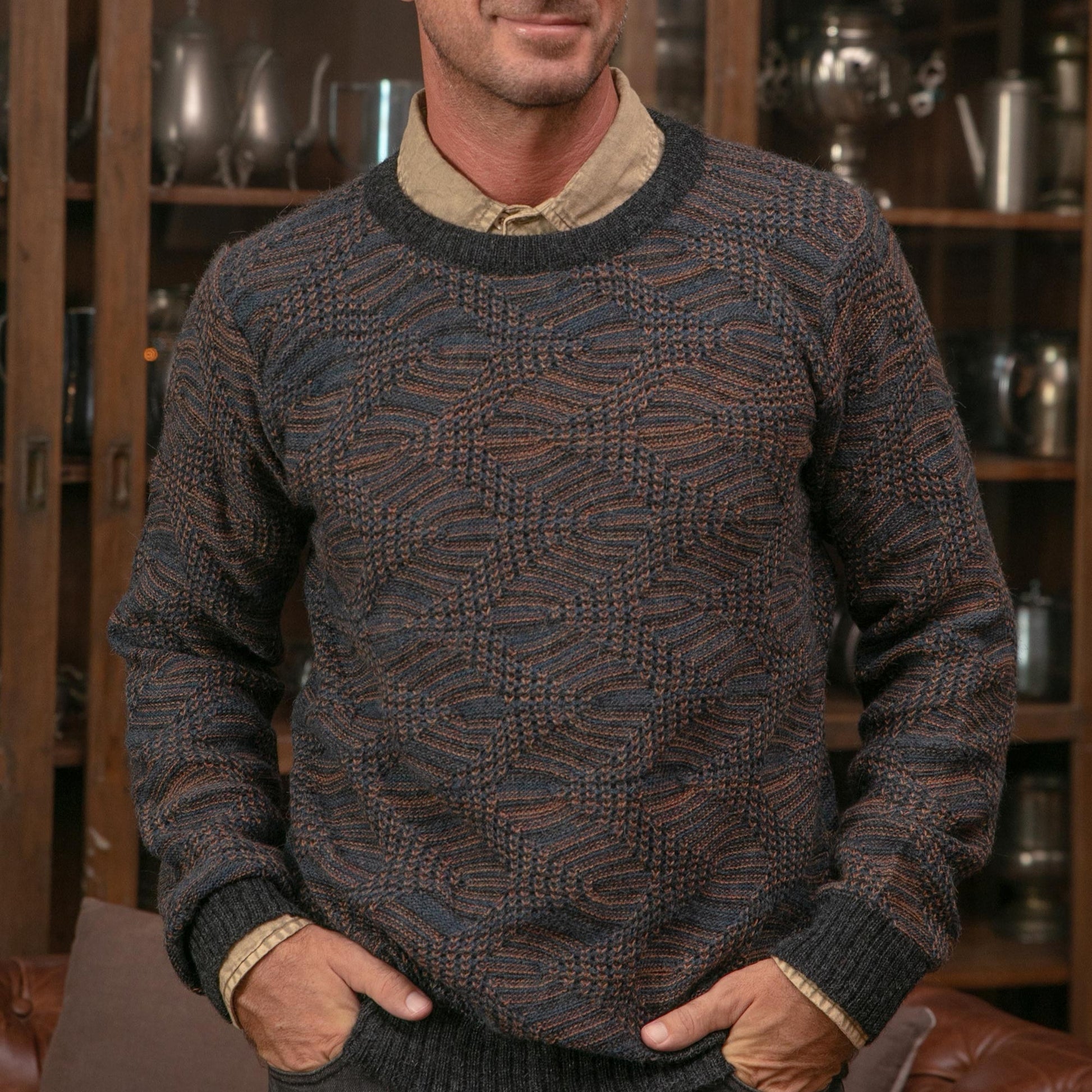 Perfect for keeping warm during the cold months, this men's pullover is crafted by Peruvian artisan Fernando Cano. He works with soft 100% alpaca yarns, knitting intricate wave patterns in blue, graphite and a hint of saffron.